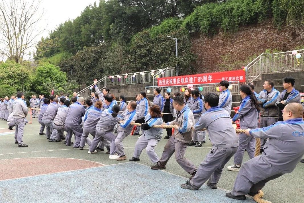為喜迎重慶機(jī)床建廠85周年,激勵(lì)全體職工在各自工作崗位上當(dāng)好“崗位英雄”,全面完成2025年目標(biāo)而努力拼搏,激發(fā)職工團(tuán)結(jié)友愛的熱情,增強(qiáng)廣大職工凝聚力和向心力,4月1日下午公司舉辦了“慶祝建廠85周年職工拔河比賽”,共有200余人組成的14支代表隊(duì)同臺(tái)競(jìng)技。